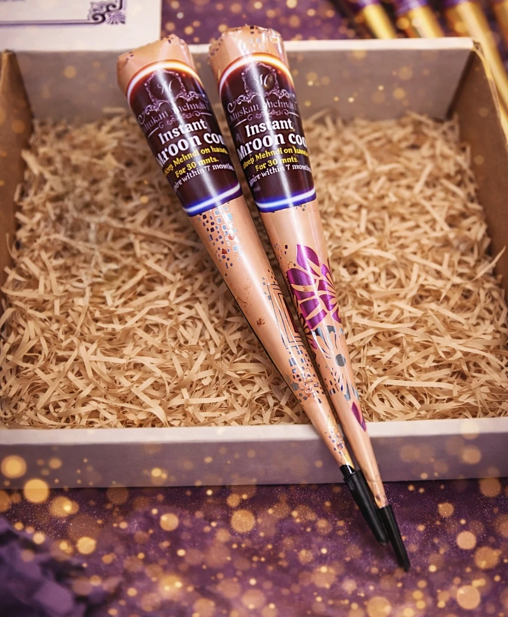 Experience beautiful color in moments with our Instant Maroon Mehndi Cone, freshly handmade using safe, natural, and 100% halal-friendly ingredients.